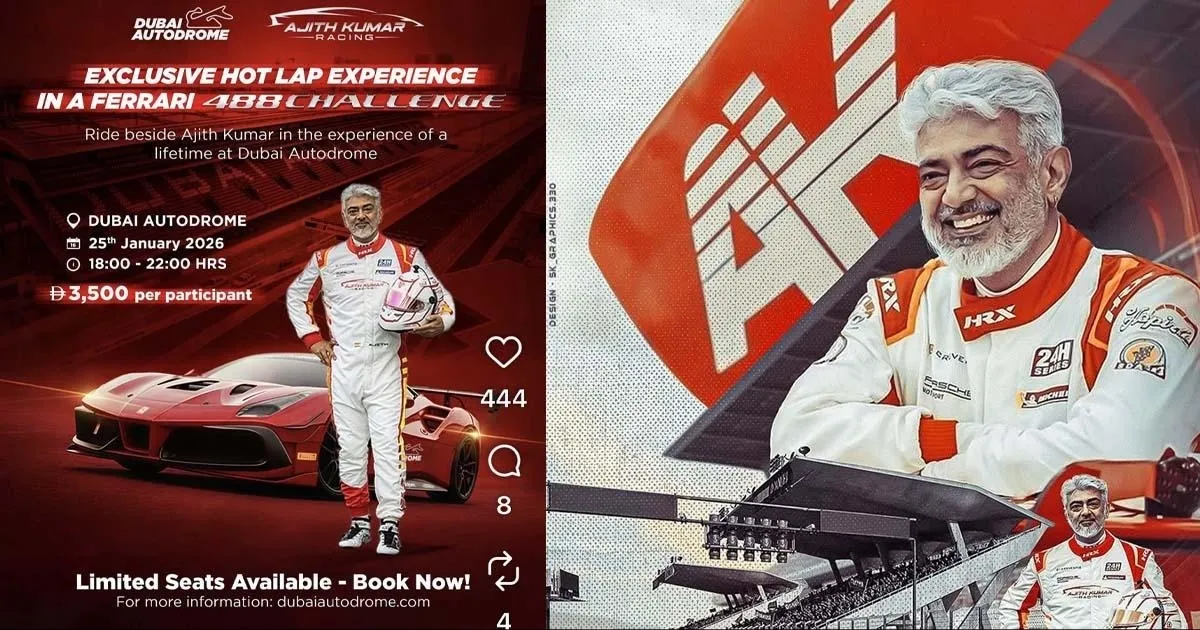 இந்த நிலையில், தற்போது நடிகர் அஜித் துபாயில் இருப்பதாகவும், அங்கு அவரது Ferrari 488 Challenge ரேஸ் காரில் உடன் பயணிக்க ரசிகர்களுக்கு வாய்ப்பு வழங்கப்பட இருப்பதாகவும் அறிவிக்கப்பட்டுள்ளது. இது அஜித் ரசிகர்களிடையே பெரும் பரபரப்பை ஏற்படுத்தியுள்ளது. அதிகாரப்பூர்வ தகவலின்படி, இந்த அனுபவத்திற்கான டிக்கெட் கட்டணம் 3500 திர்ஹாம் என நிர்ணயிக்கப்பட்டுள்ளது. இந்திய ரூபாய் மதிப்பில் இது சுமார் 86 ஆயிரம் ரூபாயாகும்.