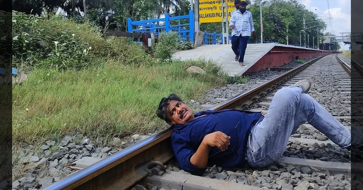இன்று காலை கல்லக்குடி சந்திப்பில் மக்களை சந்தித்து பேச்சாற்றிய மன்சூர் அலிகான், தொடர்ந்து ரெயில் நிலையம் அருகே பிரசாரத்திற்காக சென்றிருந்தார். அங்கு திடீரென, அனைவரையும் அதிர்ச்சியடையச் செய்யும் வகையில் ரெயில் தண்டவாளத்தில் படுத்து, தன்னுடைய தலைையை ரெயில் பாதையில் வைத்து, நூதன முறையில் பிரசாரம் செய்யத் தொடங்கினார்.