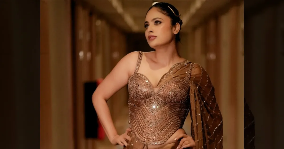 நடிகை நந்திதா விருது விழாவுக்கு கவர்ச்சி உடையில் வந்துள்ளார்.