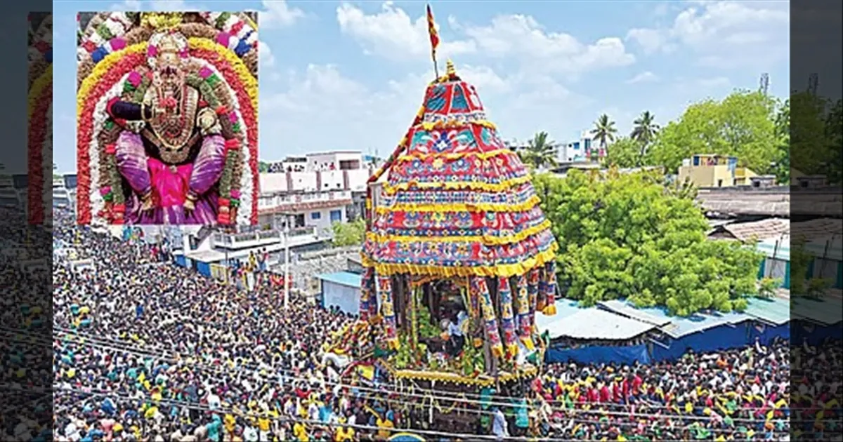 இதன் தொடர்ச்சியாக சித்திரை மாதத்தில் தேர்த்திருவிழா வெகு விமரிசையாக கொண்டாடப்படுகிறது. இந்த ஆண்டு சித்திரை தேர்த்திருவிழா கடந்த 5ஆம் தேதி கொடியேற்றத்துடன் தொடங்கியது. அன்று காலையில் அம்மன் சிறப்பு அலங்காரத்தில் கேடயத்தில் புறப்பட்டு கொடிமரம் முன்பு எழுந்தருளினார். சிவாச்சாரியார்கள் வேத மந்திரங்கள் முழங்க, கோயிலின் உள்பிரகாரத்தில் உள்ள தங்க கொடிமரத்திற்கும் அஸ்திர தேவர்களுக்கும் சிறப்பு பூஜைகள் நடைபெற்றன.