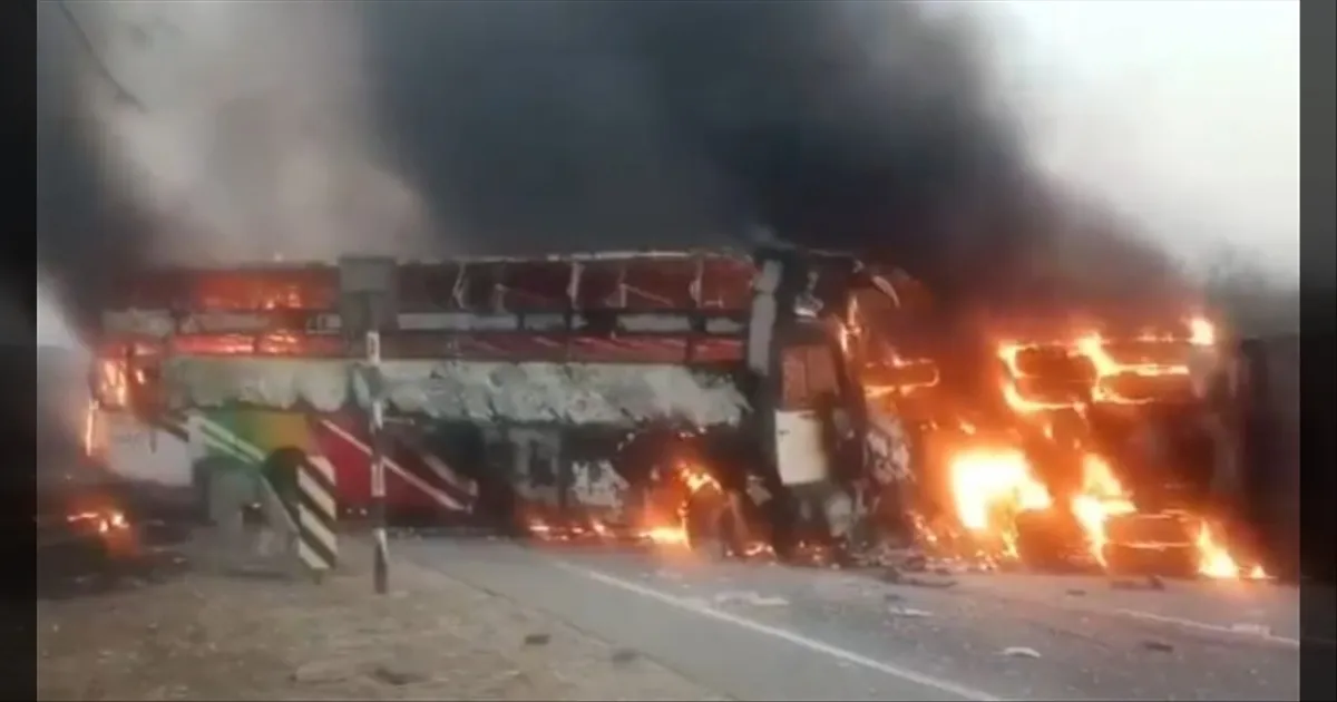 இதில் பேருந்தில் பயணம் செய்த 10 பயணிகள் சம்பவத்தின் போதே உயிருடன் எரிந்தனர். ட்ரிப்பர் லாரி மோதிய வேகத்தில் பேருந்தின் டீசல் டேங்கர் வெடித்ததில், நொடிகளில் தீ வாகனம் முழுவதும் பரவியதால் தூக்கத்தில் இருந்த பயணிகள் கண்விழிப்பதற்குள் தீப்பிழம்புகளால் சூழப்பட்டனர்.