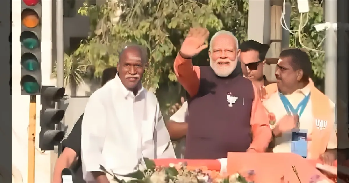 PuducherryElection2026: PM Modi Holds Massive Roadshow in Puducherry; CM Rangasamy and Namassivayam Join the Campaign.
