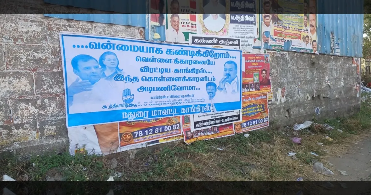 ‘Congress Fought British... Will We Bow to This Looter?’ Poster in Madurai Shocks DMK – Rahul, Sonia, Manickam Tagore Featured!