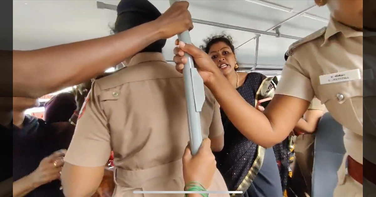 தகவல் அறிந்து வந்த திருமங்கலம் காவல்துறையினர் தவெக பெண் நிர்வாகிகள் துண்டு பிரசுரங்களை விநியோகிப்பதைஇ தடுத்து நிறுத்தினர். பின்னர் தவெக பெண் நிர்வாகிகளை கைது செய்தனர். அப்போது பெண்கள் பாதுகாப்பை வலியுறுத்தி விழிப்புணர்வு செய்யக்கூட உரிமையில்லையான தவெக பெண் நிர்வாகிகள் காவலர்களுடன் வாக்குவாதத்தில் ஈடுபட்டதால் பரபரப்பான சூழல் உருவானது .