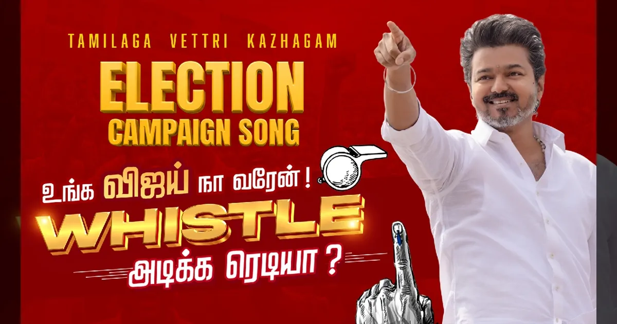 தமிழகச் சட்டமன்றத் தேர்தல் களம் உச்சக்கட்டத்தை எட்டியுள்ள நிலையில், தமிழக வெற்றிக் கழகத்தின் (தவெக) தலைவர் விஜய், தனது கட்சியின் அதிகாரப்பூர்வ தேர்தல் பிரசாரப் பாடலை இன்று வெளியிட்டுள்ளார். உங்க விஜய் நான் வரேன்! விசில் அடிக்க ரெடியா? என்ற வாசகத்தை மையமாகக் கொண்டு இந்தப் பாடல் உருவாக்கப்பட்டுள்ளது. இது விஜய்யின் அரசியல் வருகைக்காகக் காத்திருந்த தொண்டர்களிடையே பெரும் உற்சாகத்தை ஏற்படுத்தியுள்ளது.