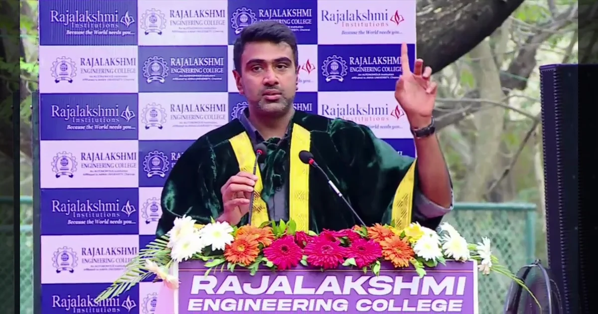 காஞ்சிபுரம் மாவட்டம்  தண்டலத்தில் ராஜலட்சுமி பொறியியல் கல்லூரி செயல்பட்டு வருகிறது, இதில் 23 ஆம் ஆண்டு பட்டமளிப்பு விழா கல்லூரி வளாகத்தில் நடைபெற்றது.இந்நிகழ்வில் சிறப்பு விருந்தினராக இந்திய கிரிக்கெட் அணியின் சுழல்பந்து வீச்சாளர் அஸ்வின் கலந்து கொண்டு மாணவ மாணவிகளுக்கு பதக்கங்கள் மற்றும் பட்டங்களை வழங்கினார்.இதில் பேசிய அஸ்வின், தமிழ் ஓகே வா, ஆங்கிலம் ஓகே வா , இந்தி ஓகே வா என கேட்டார்.தமிழுக்கு மட்டுமே மாணவ மாணவிகள் சத்தம் போட்டு ஆரவாரம் செய்தனர்.இந்திக்கு யாரும் ஆதரவு அளிக்காததால், இந்தி தேசிய மொழி அல்ல, அலுவல் மொழி தான் என்று தெரிவித்தார்.