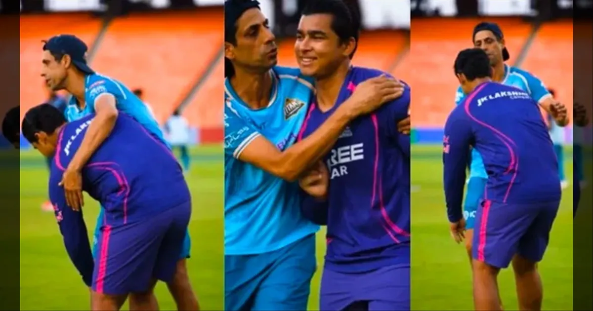 குஜராத் டைட்டன்ஸ் அணியின் தலைமைப் பயிற்சியாளரும், இந்திய கிரிக்கெட்டின் முன்னாள் வேகப்பந்து வீச்சு சிற்பியுமான ஆஷிஷ் நெஹ்ராவை, ராஜஸ்தான் ராயல்ஸ் அணியின் இளம் வீரர் வைபவ் சூர்யவன்ஷி சந்தித்தார். அப்போது, தனது மரியாதைக்குரிய முன்னாள் வீரரின் காலில் வணங்கி ஆசீர்வாதம் கேட்ட வைபவின் செயல் அனைவரையும் கவர்ந்தது. இதைக் கண்ட நெஹ்ரா உடனடியாக இளம் வீரரைத் தூக்கி நிறுத்தி, அன்புடன் கட்டிப்பிடித்து, தோளில் தட்டி பாராட்டினார். இந்த காட்சி கிரிக்கெட் உலகில் பெரும் பாராட்டைப் பெற்றுள்ளது.